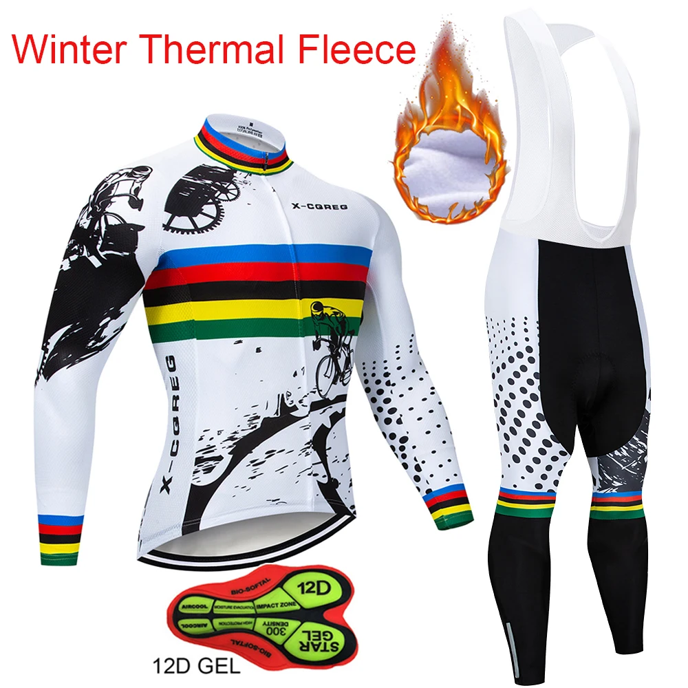 2019 Hot X-CQREG Winter Thermal Fleece Cycling Jersey Long Sleeve Jerseys Cycling Bib Pants Set Bik