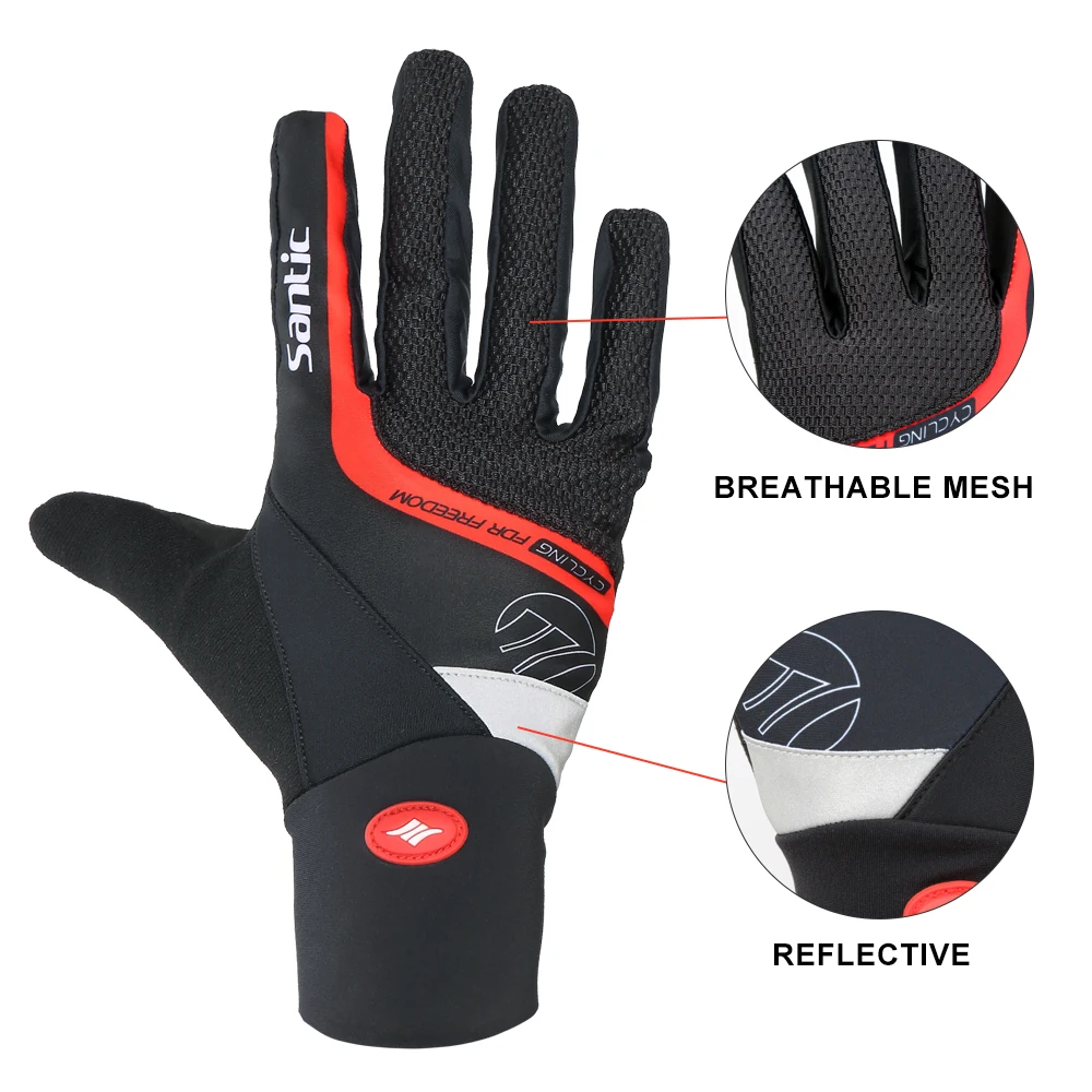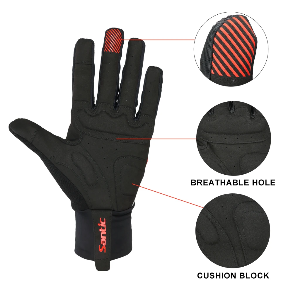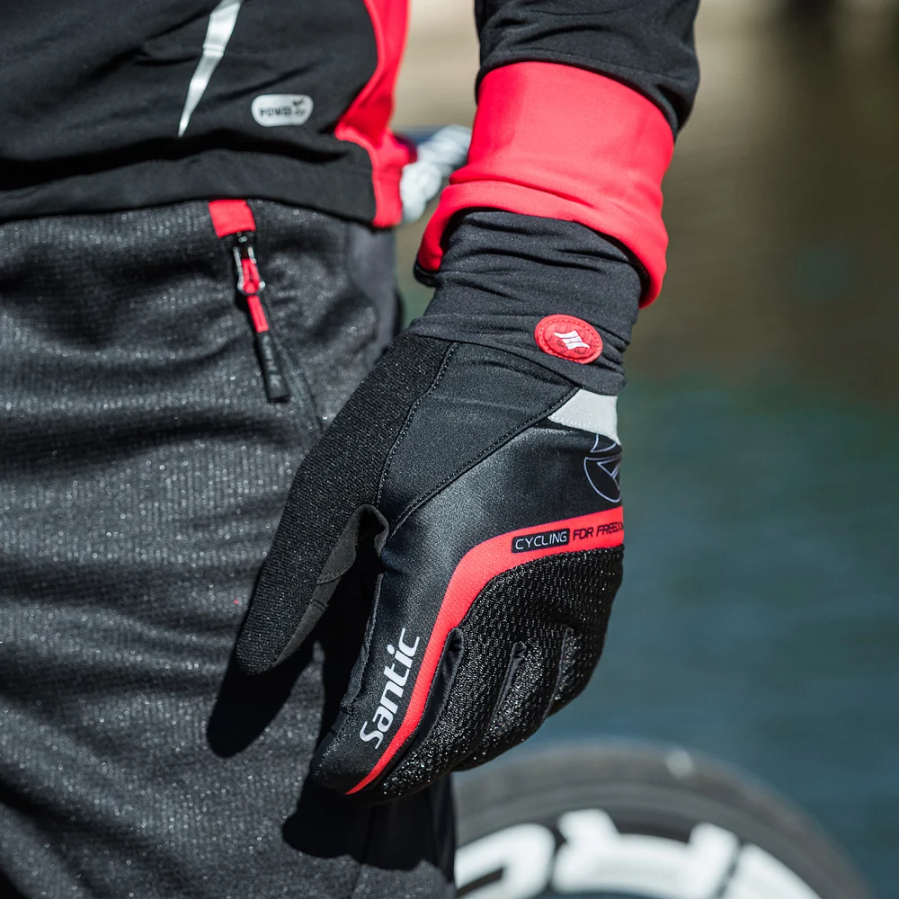 Santic Cycling Gloves Men Red Black Gel Warm Full Finger with Touch Function Shockproof Keep Warm f