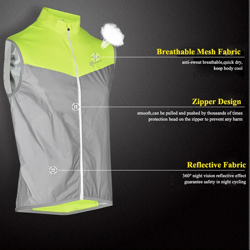 ROCKBROS Reflective Safety Vest Sleeveless Cycling Vest Jacket Windproof Bike Clothing Bicycle Jers