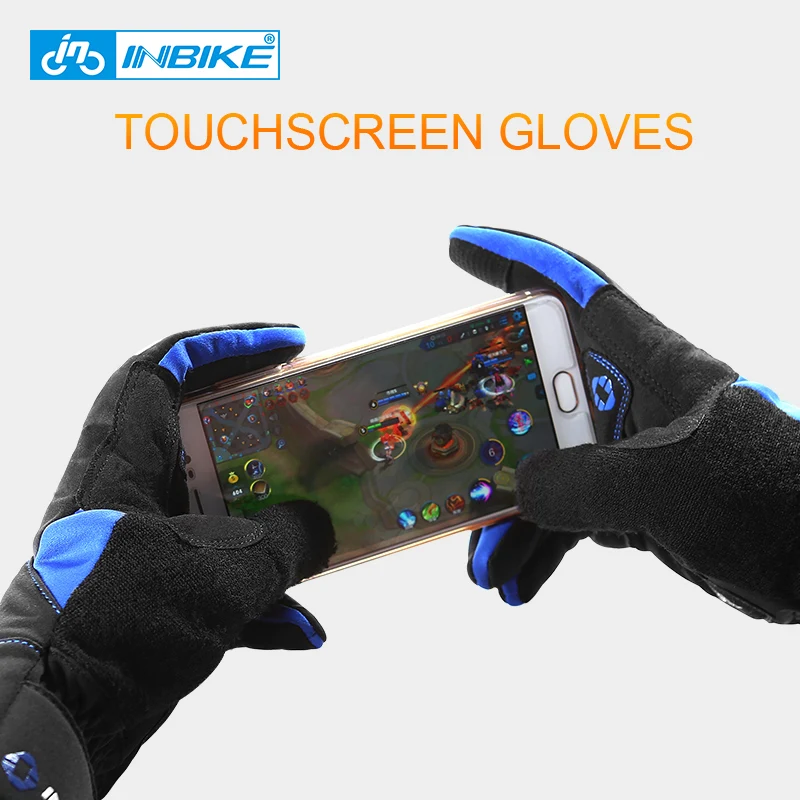 INBIKE Touch Screen Bike Gloves Winter Thermal Windproof Warm Full Finger Cycling Gloves Waterproof