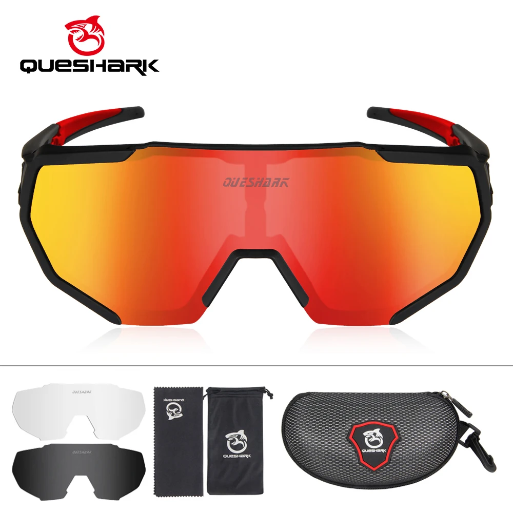 QUESHARK New Design Polarized Cycling Glasses For Man Women Bike Eyewear Cycling Sunglasses 3 Lens